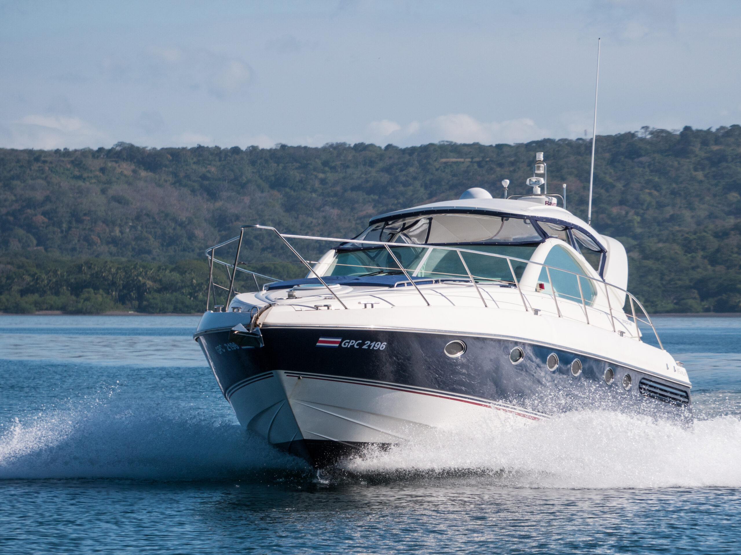 Experience the ultimate on water luxury with the Fairline 50. Ideal for groups of up to 13 on day charters (8 included) or for overnight experiences hosting 6 passengers (6 included), this vessel offers air conditioned comfort, three bedrooms, and premium amenities including paddle boards and snorkel gear. Enjoy complimentary drinks, snacks, and professional service as you explore Costa Rica’s beautiful coast.
