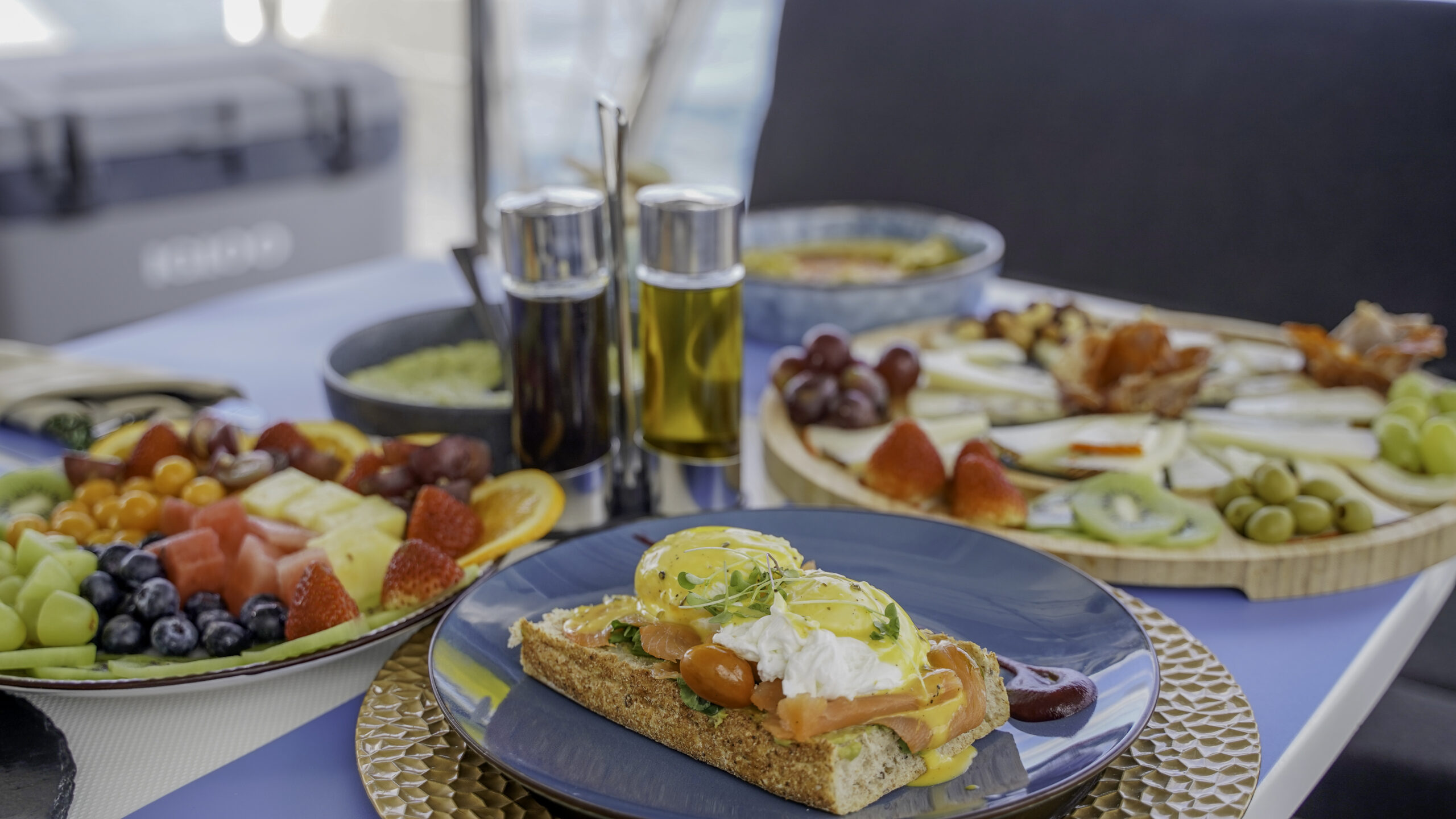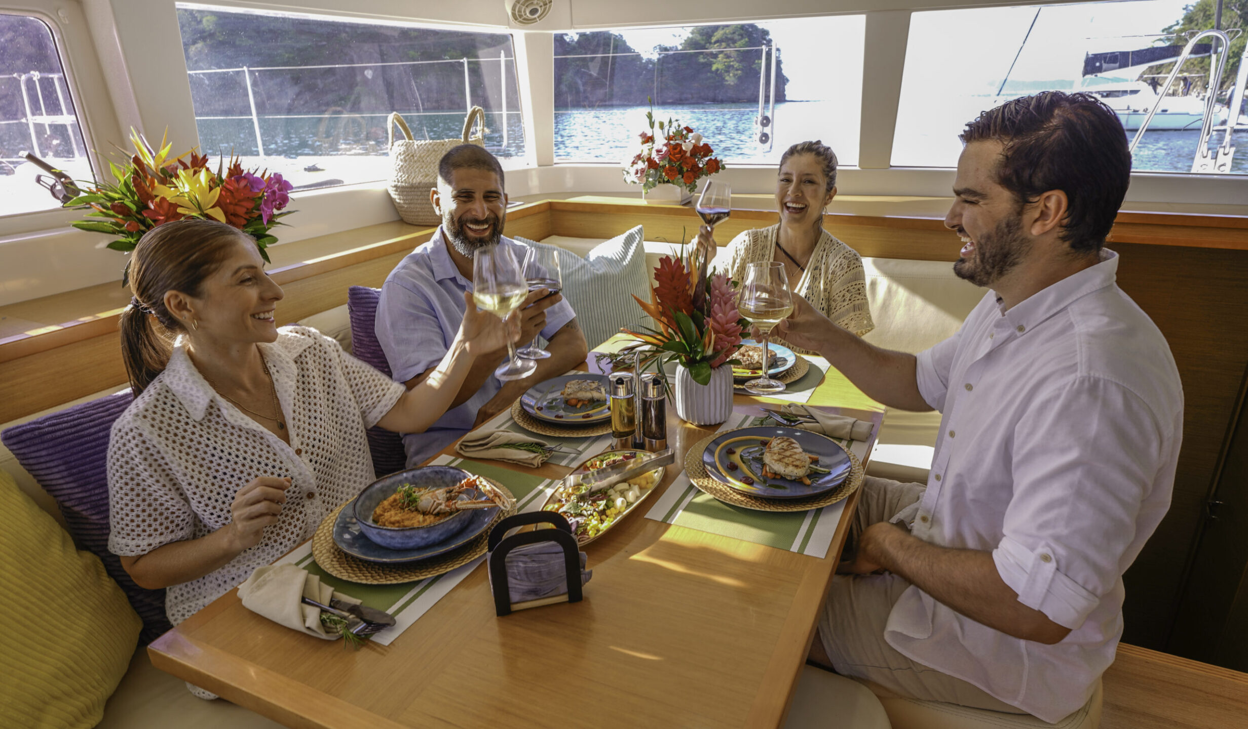 Our catamaran is the ideal vessel for your group excursions, celebrations, and unforgettable journeys. Whether you’re planning a lively day charter for up to 30 passengers (8 included) or an intimate dinner on board with up to 10 passengers (6 included), this catamaran offers the perfect setting for unforgettable moments.