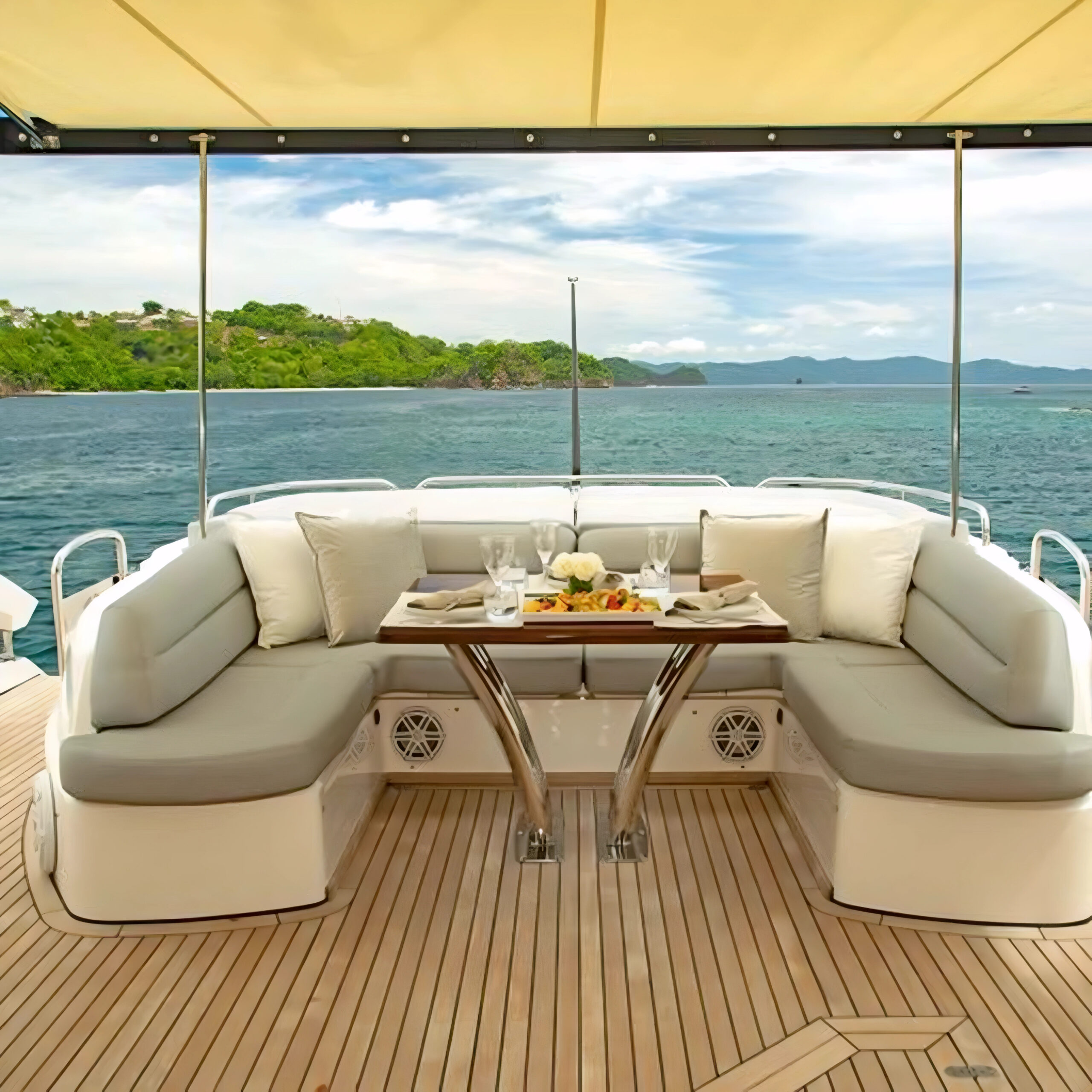 Indulge in luxury and elegance aboard our 80ft yacht and spend the day with up to 16 passengers or unwind with 8 for an overnight stay, where you’ll savor impeccable service, breathtaking views, and unforgettable moments on the open water.